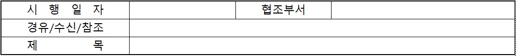 ▷ 참조~전결권자 결재 전에 경유하여야 하나 경유자의 부재 혹은 긴박한 경우에 전결권자의 결재 후 참조란에 경유자의 서명을 득하여 관련내용을 공유케 함.