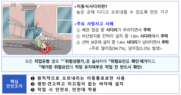 ⑤ 이동식 사다리: 최근 5년간(17년~21년) 19명 사망