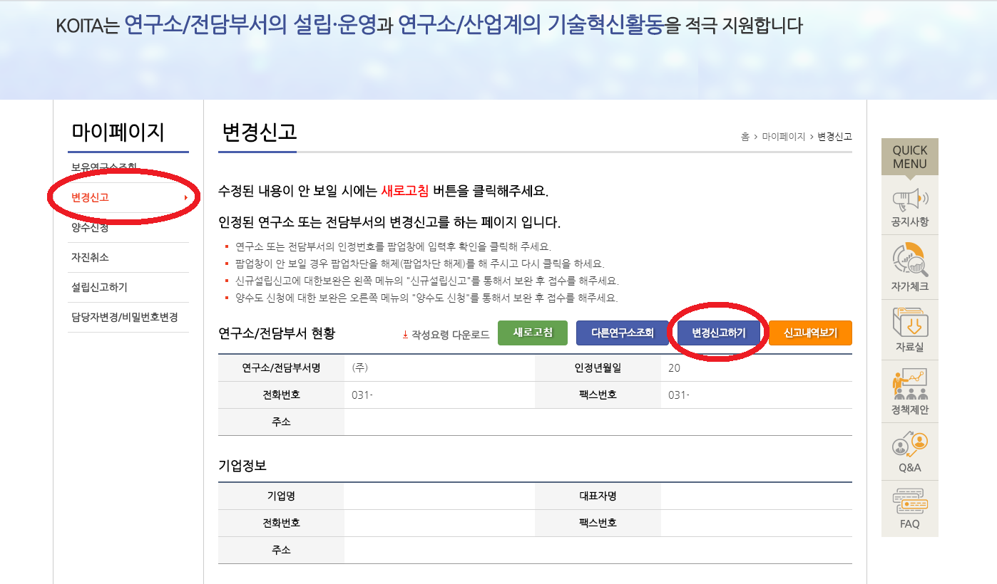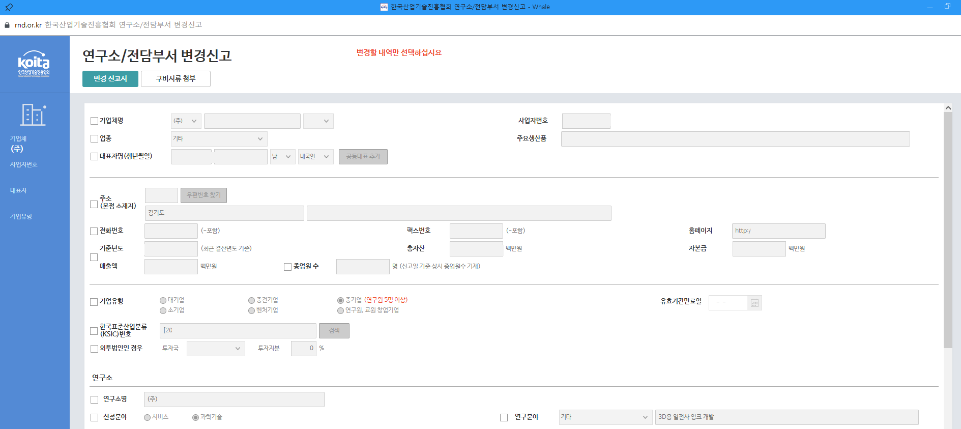 기업부설 연구소 연구개발전담부서 신고관리시스템