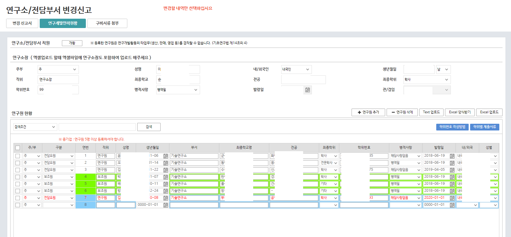 어느정도 업력이 쌓인 중소기업체의 경우 부설연구소를 운영하는 경우가 일반적이다. 오늘은 기업부설 연구소의 연구인력 현황을 변경하는 법을 소개해보고자 한다.